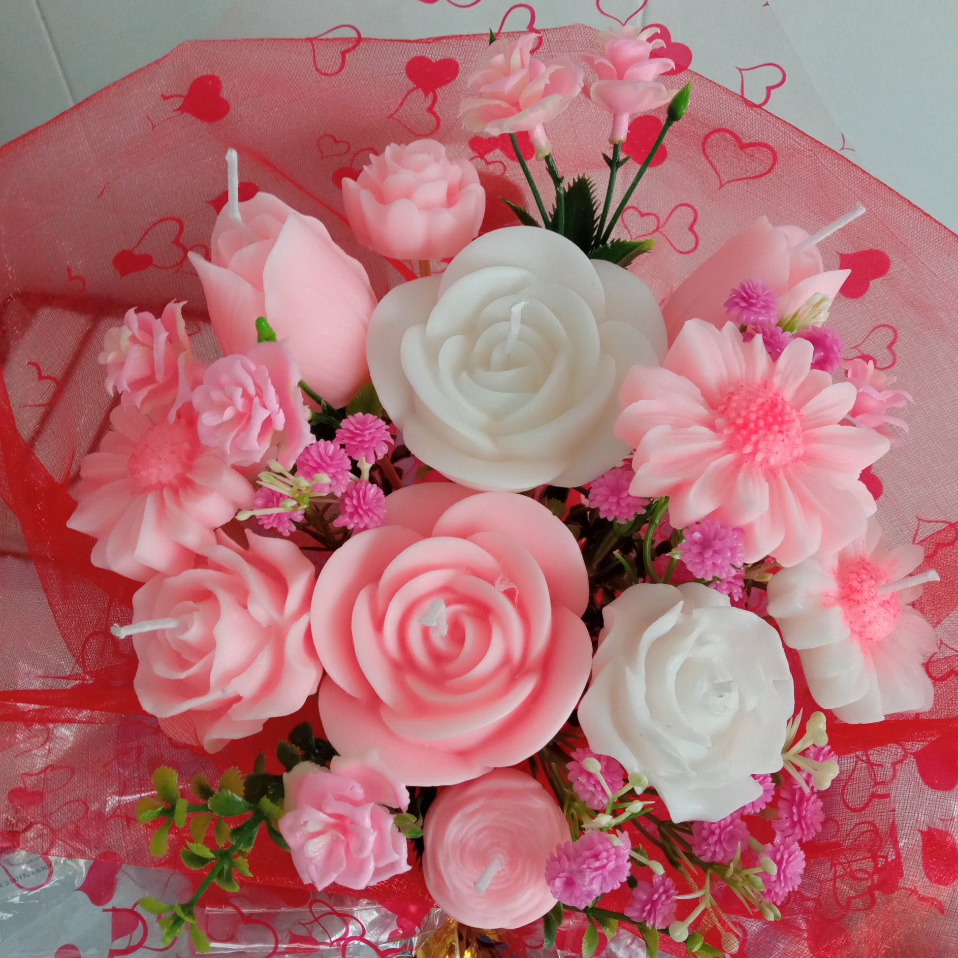 - Design Exclusivo: Formato de buquê real, envolto em papel de seda vibrante e celofane com detalhes de coração. Pronto para presentear!