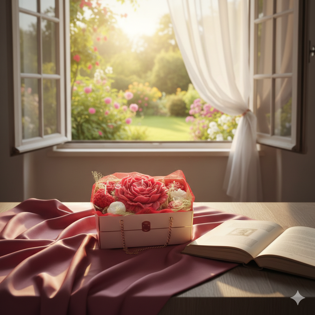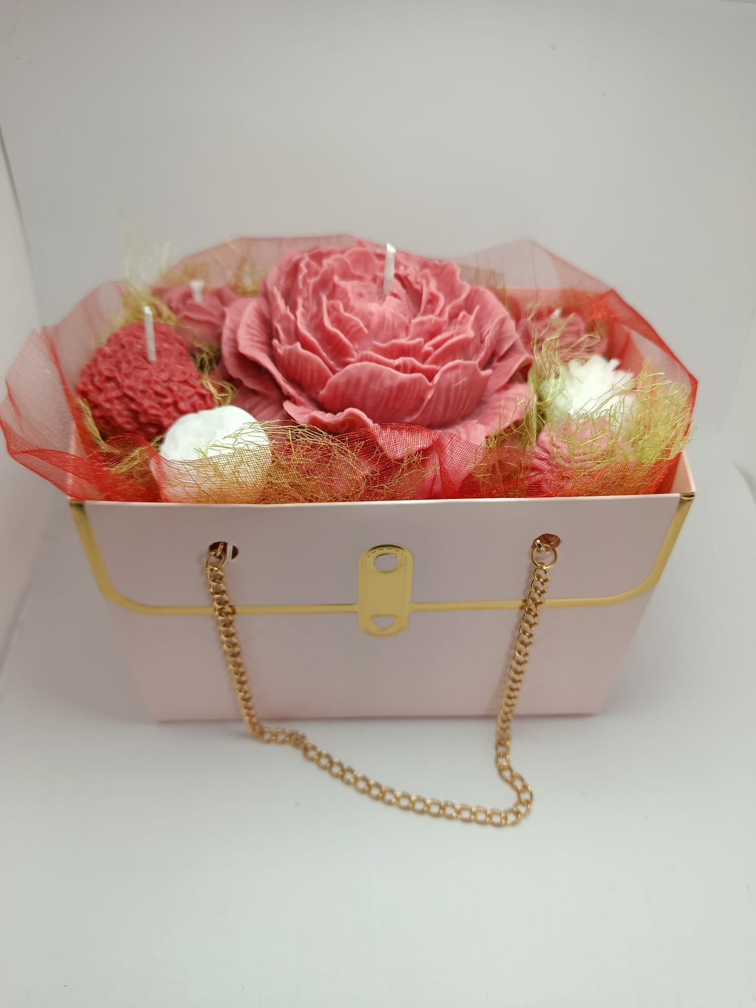 Eleve o conceito de presentear com a nossa Box Premium Peônia. No centro desta composição, destaca-se uma peônia de dimensões generosas, meticulosamente esculpida para revelar camadas infinitas de pétalas delicadas. Acompanhada por mini rosas e uma vela em formato de coração texturizado, esta caixa é a definição de romantismo e sofisticação.